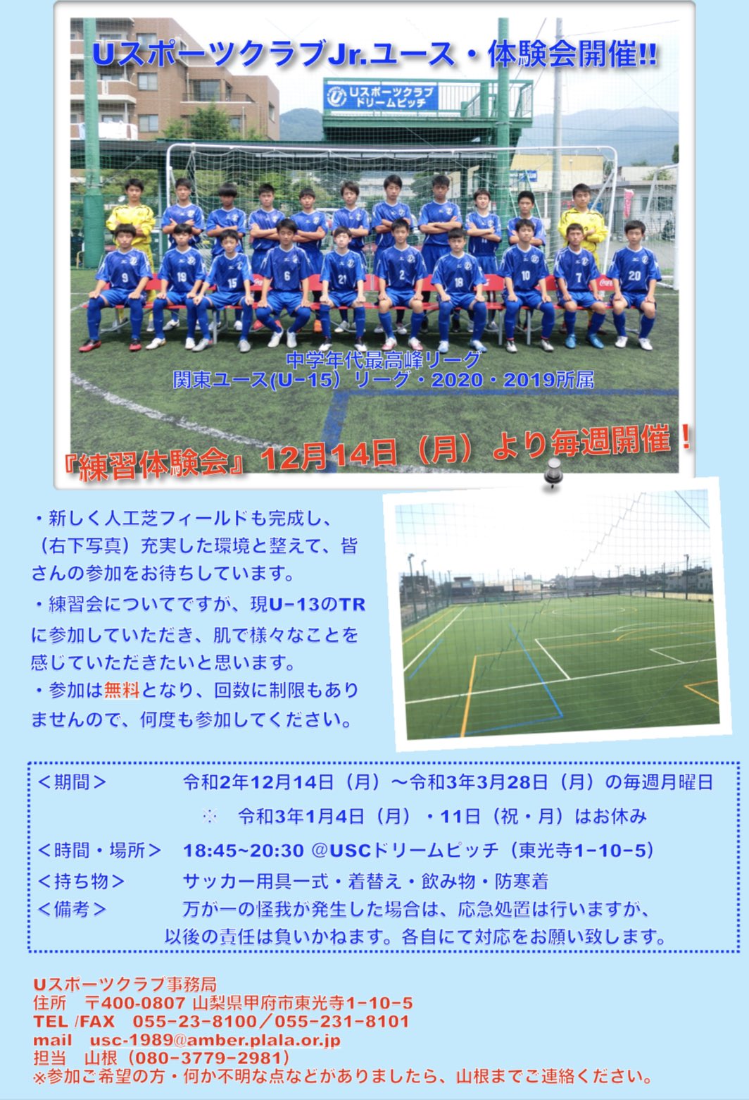 公式 Uスポーツクラブ 中学生練習体験募集 12 14日 月 より毎週開催 ぜひお待ちしております Uスポーツクラブ ジュニアユース 中学生年代 練習体験 山梨県 甲府市